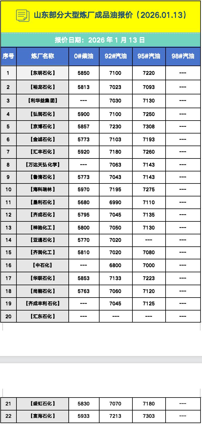 上一篇: 山东部分大型炼厂成品油报价(2026.01.15)