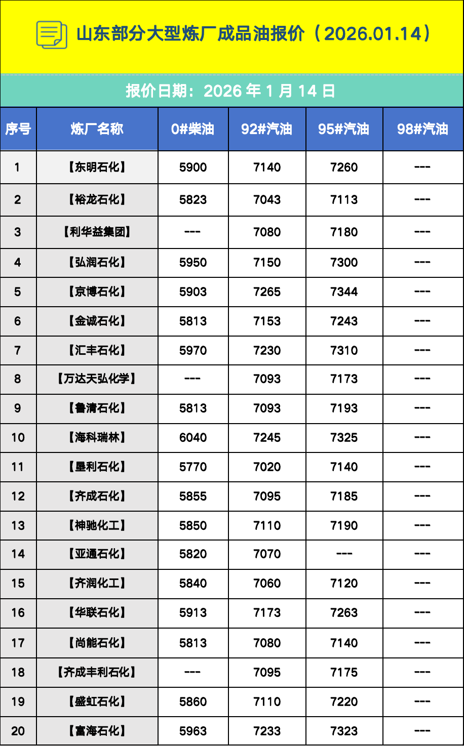 下一篇: 山东部分大型炼厂成品油报价(2026.01.13)