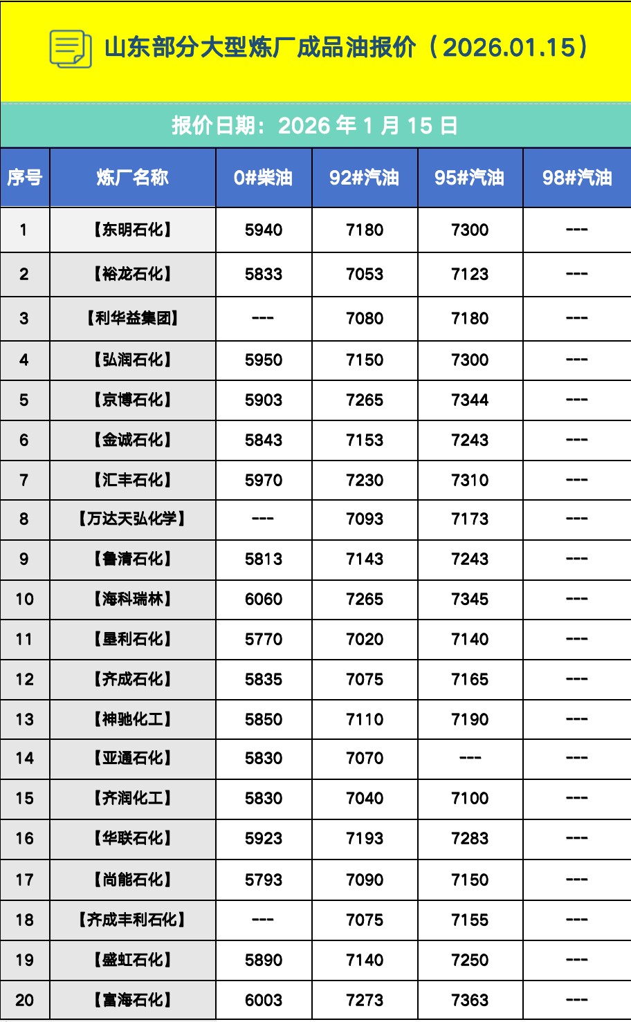 下一篇: 山东部分大型炼厂成品油报价(2026.01.14)