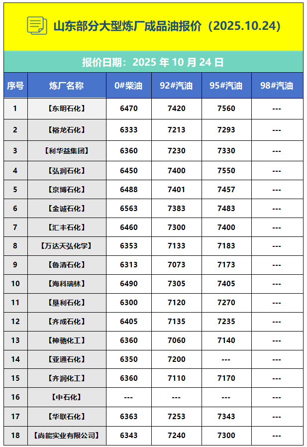 下一篇: 山东部分大型炼厂成品油报价(2025.10.23)