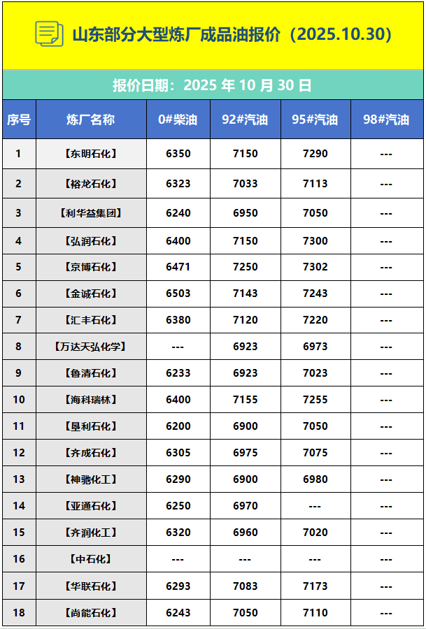 下一篇: 山东部分大型炼厂成品油报价(2025.10.29)