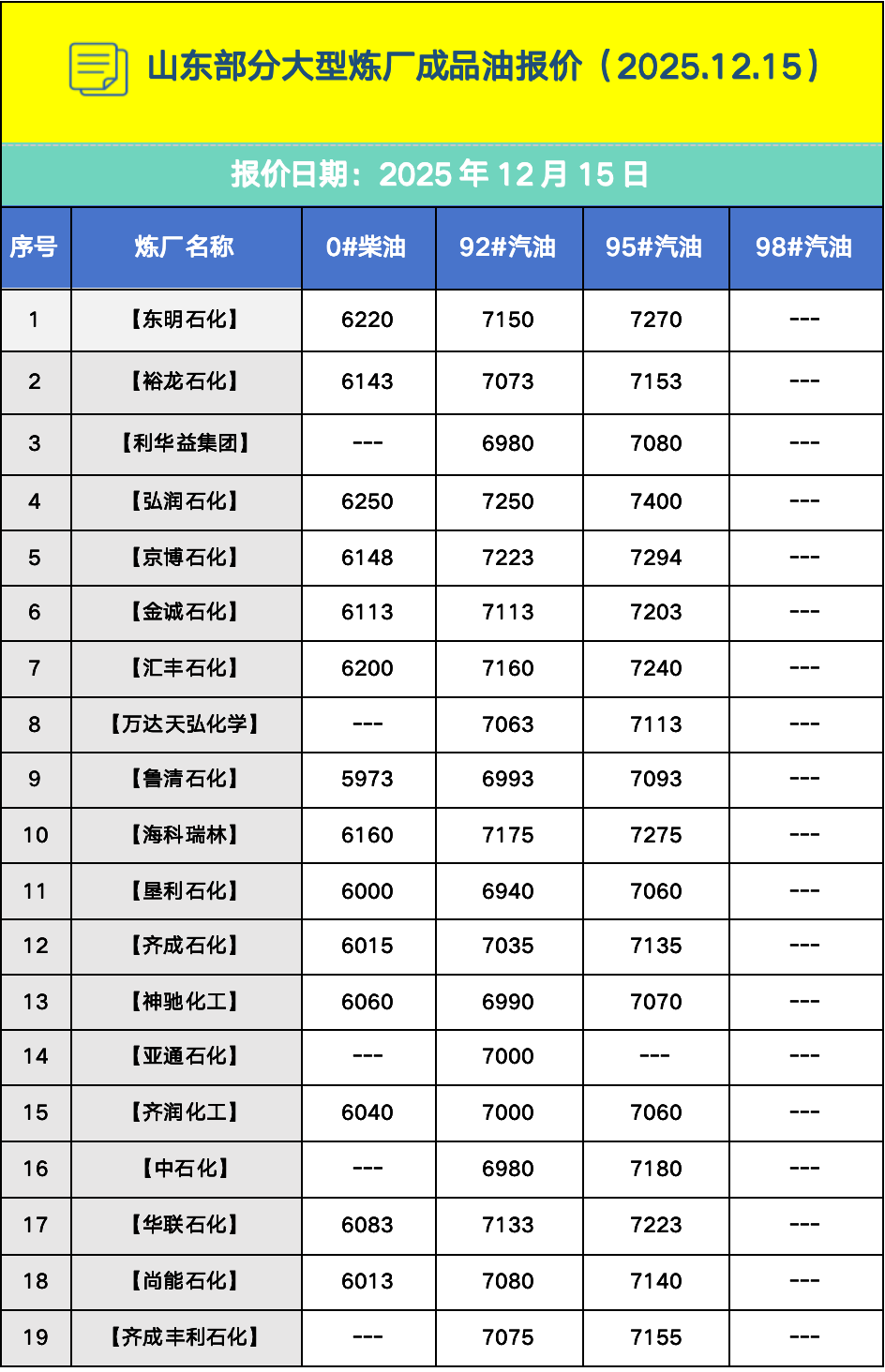 下一篇: 山东部分大型炼厂成品油报价(2025.12.12)