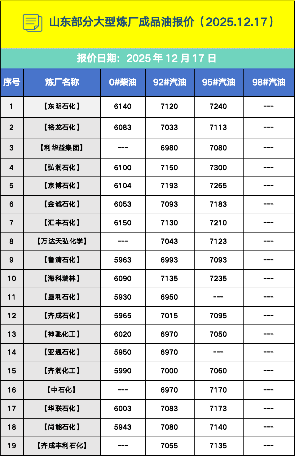 下一篇: 山东部分大型炼厂成品油报价(2025.12.16)