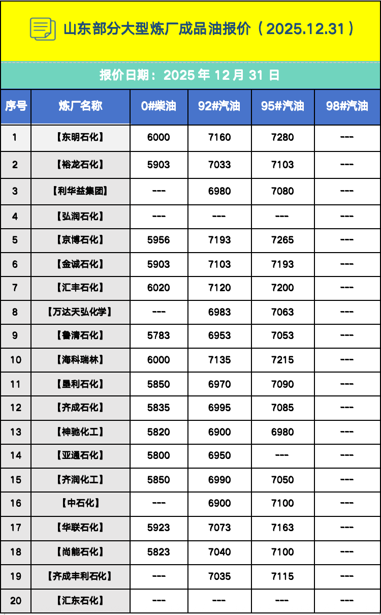 下一篇: 山东部分大型炼厂成品油报价(2025.12.30)