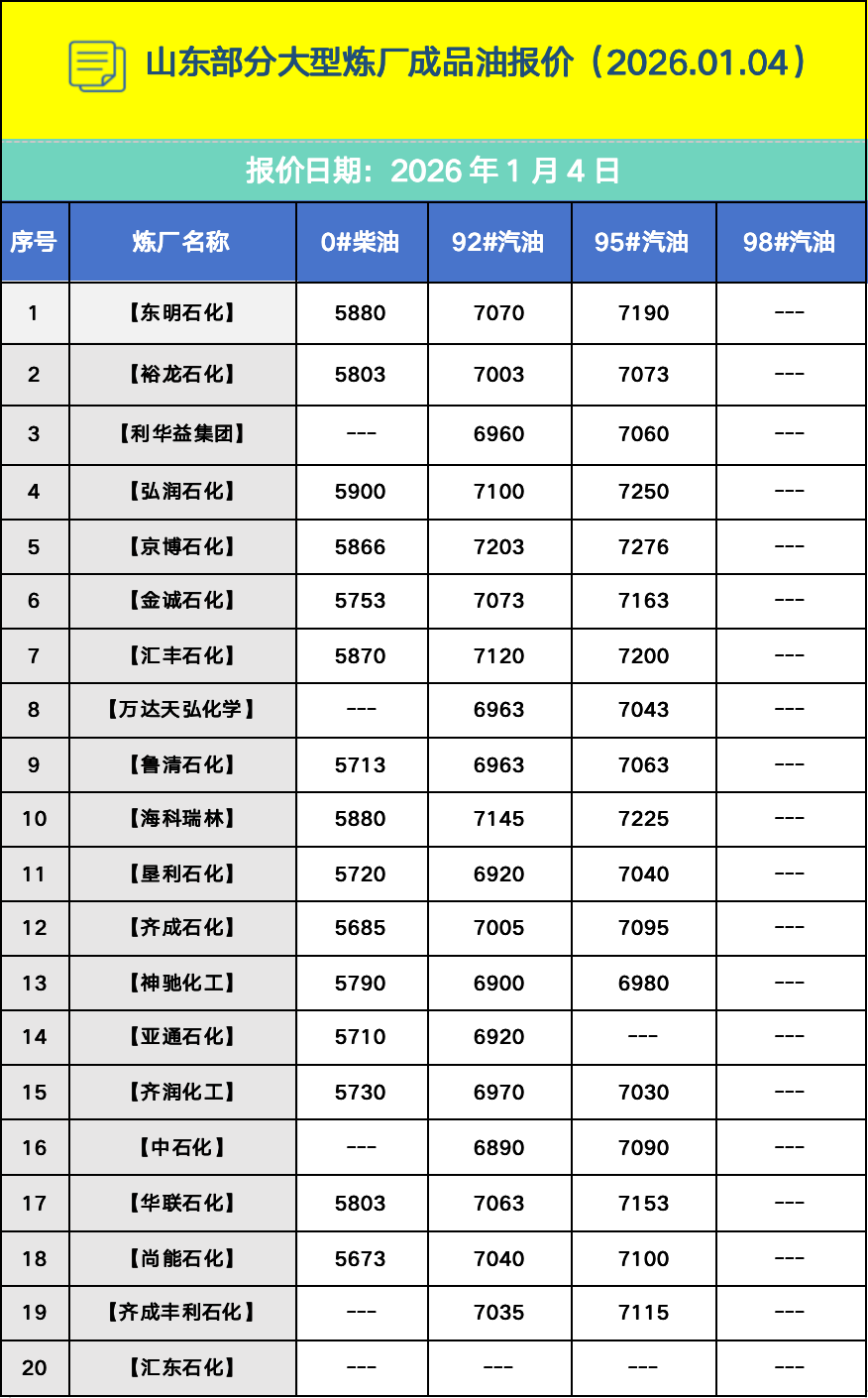 上一篇: 山东部分大型炼厂成品油报价(2026.01.13)