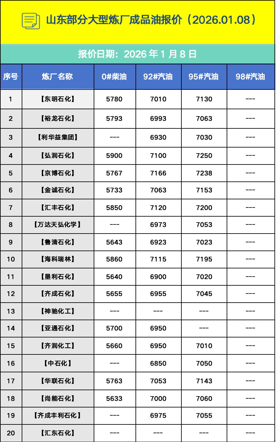 下一篇: 山东部分大型炼厂成品油报价(2026.01.07)